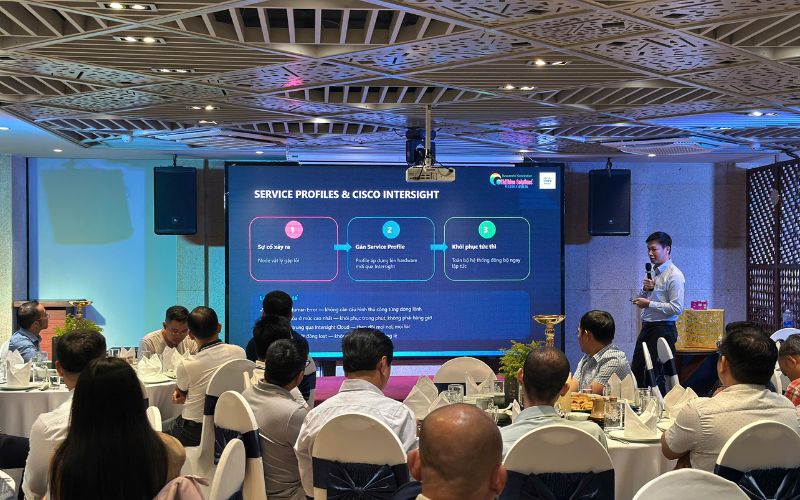 Không chỉ dừng lại ở việc cung cấp thông tin, sự kiện “kết nối tương lai số” còn tạo ra một môi trường kết nối mở, nơi Quý Khách hàng và Đối tác có thể trực tiếp trao đổi với các chuyên gia từ Thi Thiên Solutions và Cisco. Những vấn đề thực tế trong vận hành hệ thống, bảo mật và tối ưu hạ tầng đã được đưa ra thảo luận, giúp các doanh nghiệp có thêm góc nhìn và định hướng phù hợp.